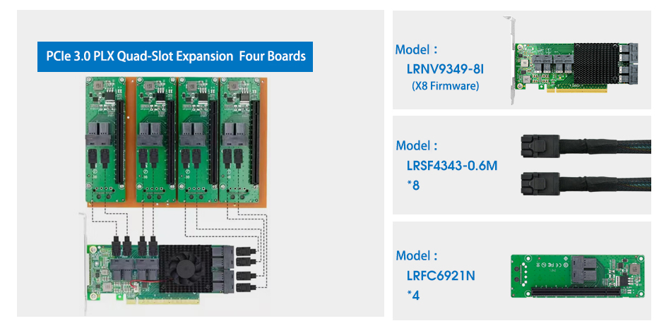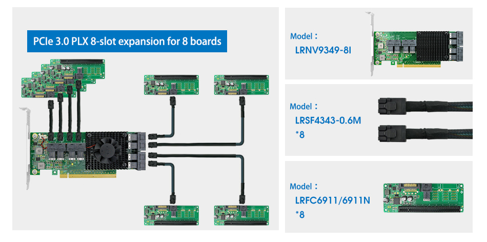 LRNV9349-8I NVMe Series is PCI Express x16 Gen3 Multi-Host PCI-e switch Card. It offers Multi-Host PCI Express switching capability that enables users to connect multiple hosts to their respective endpoints via scalable, high-bandwidth, non-blocking interconnection to a wide variety of applications including servers, storage, communications, and graphics platforms.