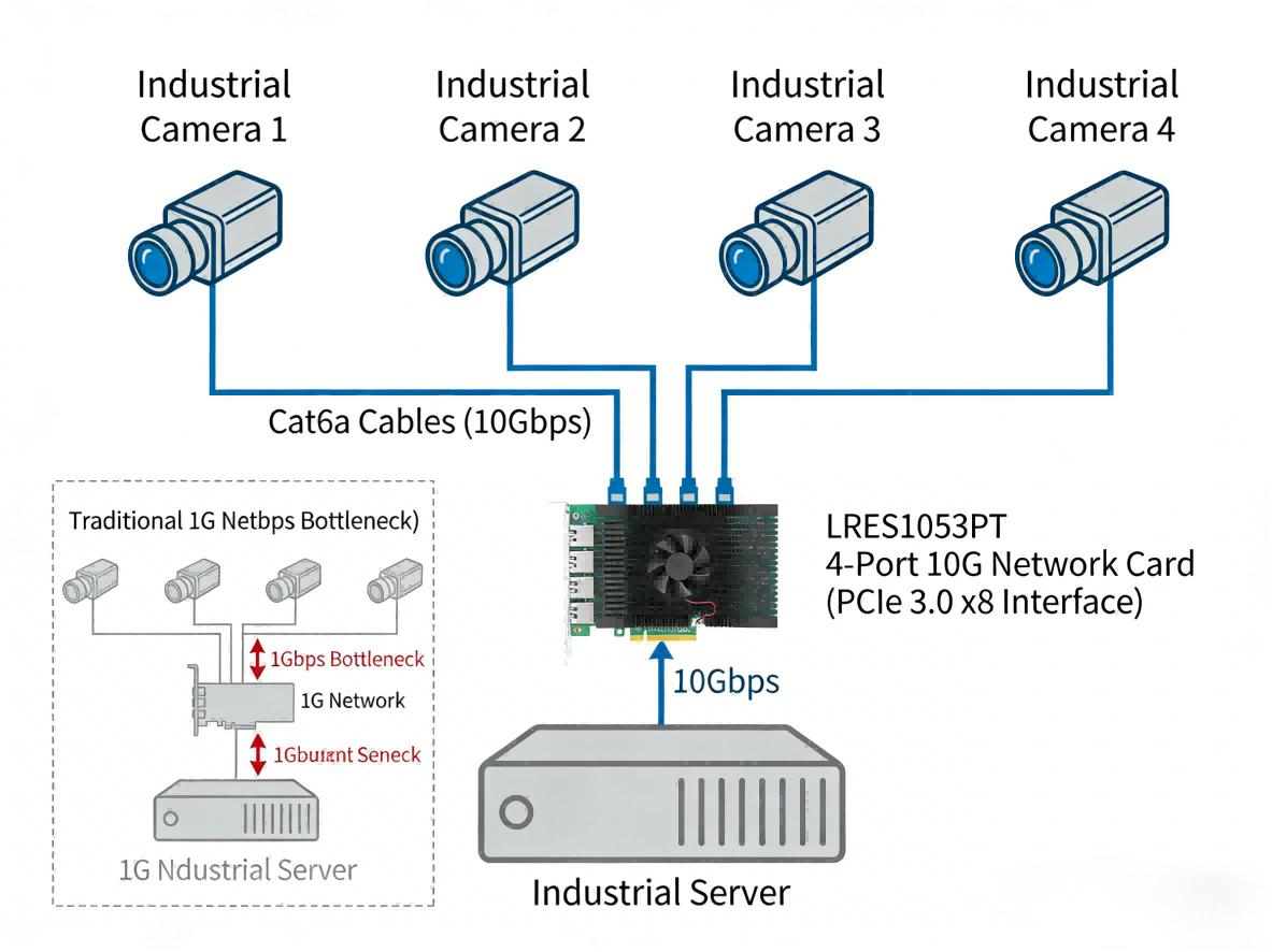 In the wave of transformation and upgrading of intelligent manufacturing, the importance of network infrastructure has become increasingly prominent. The LR-LINK LRES1053PT 10G quad-port copper Ethernet network card provides a high-performance and high-reliability network connection solution for machine vision systems, helping manufacturing enterprises achieve the comprehensive goals of cost reduction, efficiency improvement, quality enhancement and safety assurance.