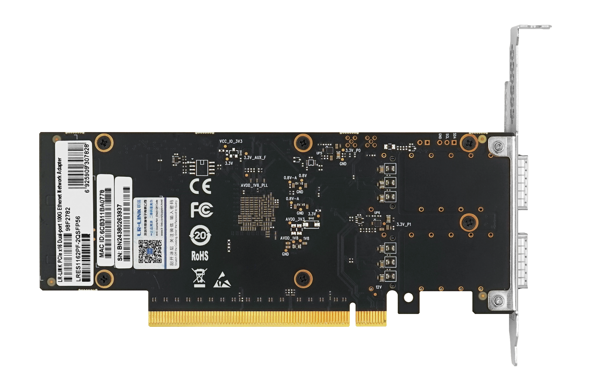 LRES1162PF-2QSFP56 is a PCIe x16 Dual-port 100G Ethernet Network Adapter. It is equipped with two QSFP56 connectors, supports high-speed fiber transmission, and the physical board size follows the HHHL (Half-Height Half-Length) PCIe add-in card form factor.