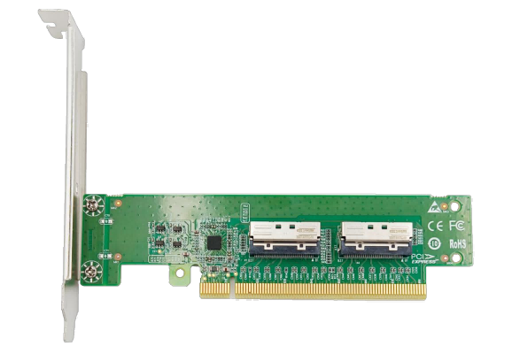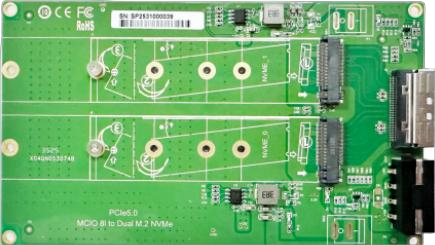 Connect directly to the U.2 NVMe SSD via an MCIO-to-SFF-8639 cable, supporting four x4 data link configurations (supported by both CPU and BIOS). Supports dual-channel x8 data link width configuration (supported by both CPU and BIOS). It features two built-in MCIO8i connector groups with pin definitions defined by SFF-9402.
