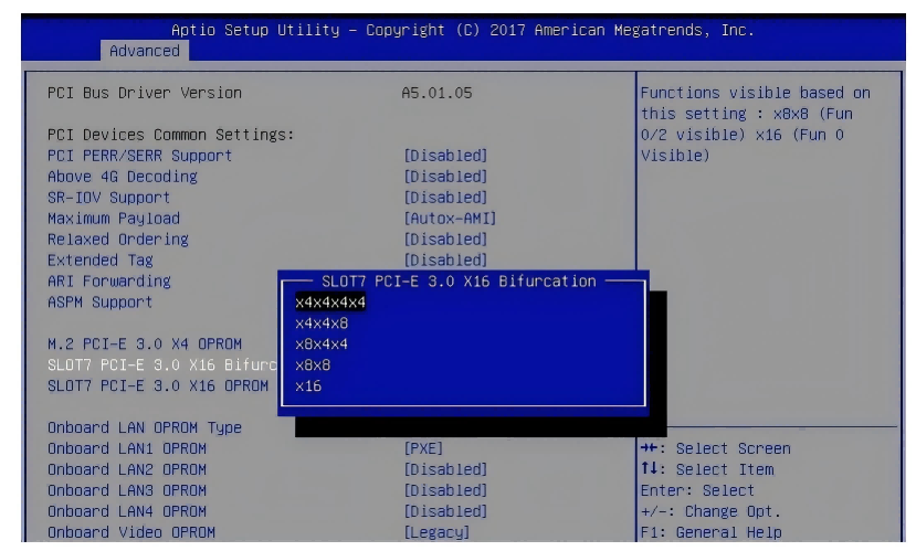 Configure PCIe channel allocation (e.g. x16 → x8+x8 or X4X4X4X4)