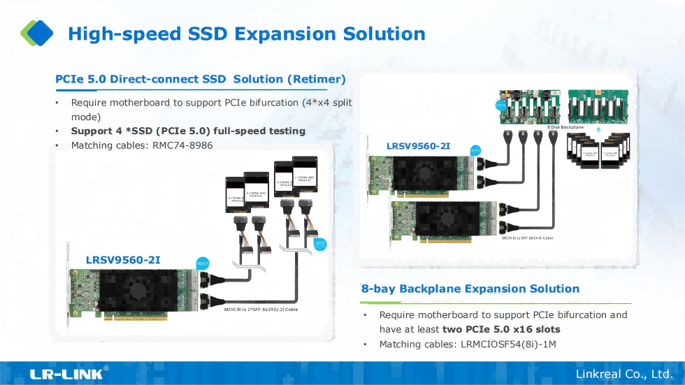 Finally, it is recommended that you choose a motherboard that supports PCIe bifurcation, such as the ASUS ROG series, GIGABYTE AORUS series, SUPERMICRO or MSI MEG series. If your motherboard cannot meet the needs, you can choose LR-LINK Switch cards to further enhance the device expansion capability. Pay attention to LR-LINK products, providing more possibilities for your hardware configuration!