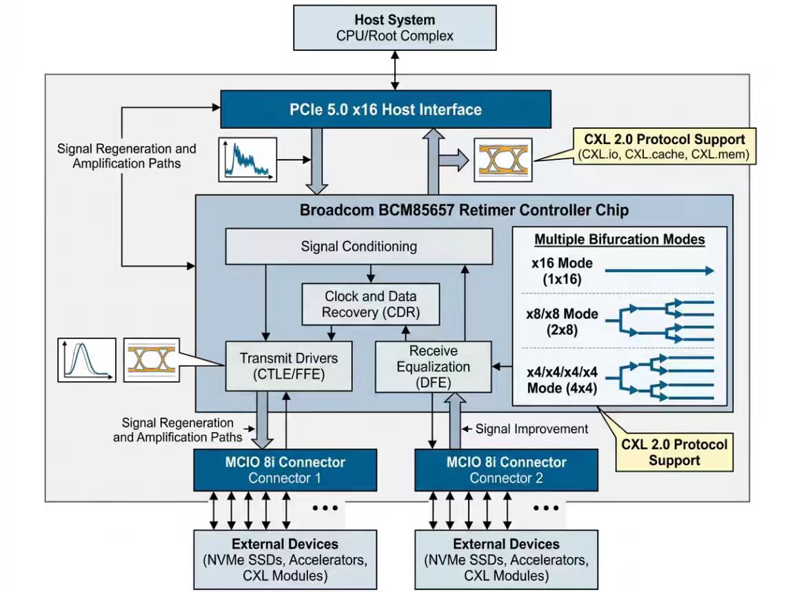 Retimer chip ensures PCIe 5.0 signal integrity during long-distance transmission