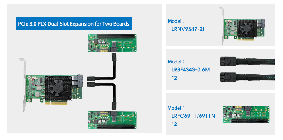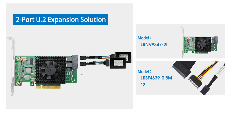 LRNV9347 NVMe Adapter is PCI Express x8 Gen3 PCIe switch Card. It expands the maximum storage of the 2 U.2 SSD via scalable, high-bandwidth, non-blocking interconnection to a wide variety of graphics applications including servers, storage, communications, and graphics platforms. It is optimized to support high-resolution graphics while supporting peer-to-peer traffic and multicast for maximum performance.