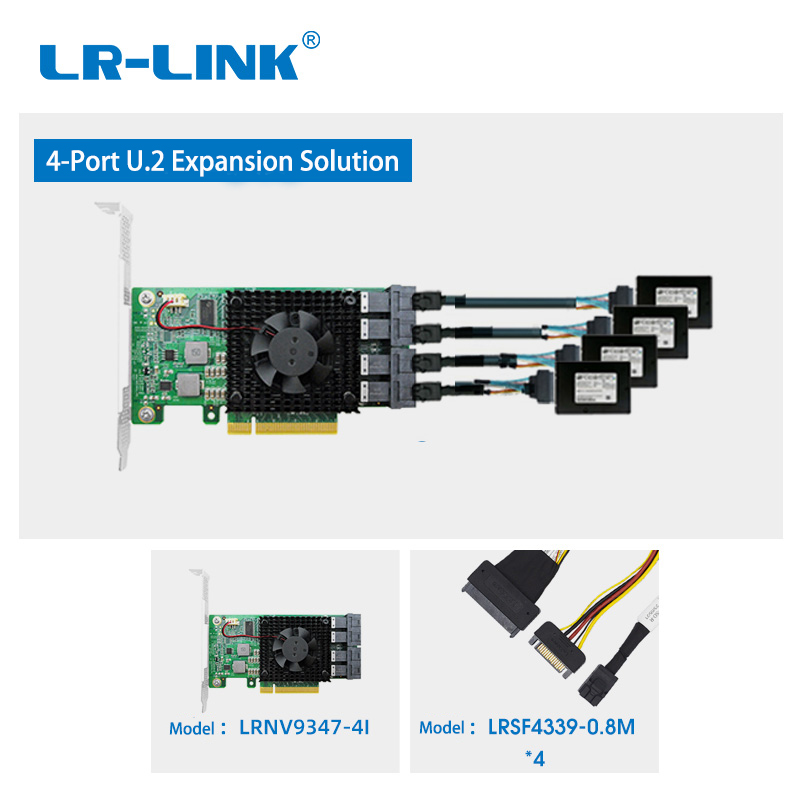 LRNV9347-4I NVMe Adapter is PCI Express x16 Gen3 PCIe switch Card. It allows us to connect 4x U.2 device at full speed to a host system, and it expands the maximum storage of the 4 U.2 SSD via scalable, high-bandwidth, non-blocking interconnection to a wide variety of graphics applications including servers, storage, communications, and graphics platforms. It is optimized to support high-resolution graphics while supporting peer-to-peer traffic and multicast for maximum performance.
