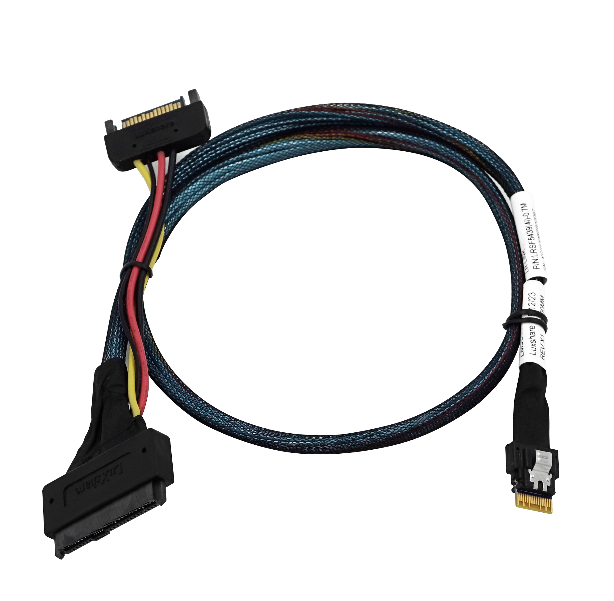 This SAS cable can be used to connect internal devices, e.g. a device with SFF-8639 connector to a controller with Slim SAS SFF-8654 4i connector