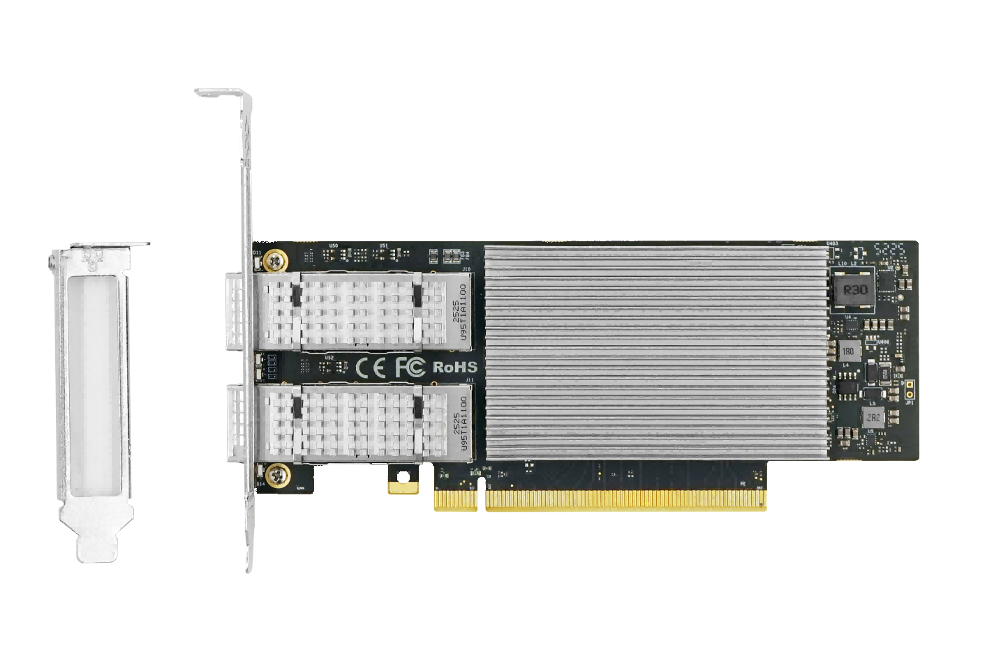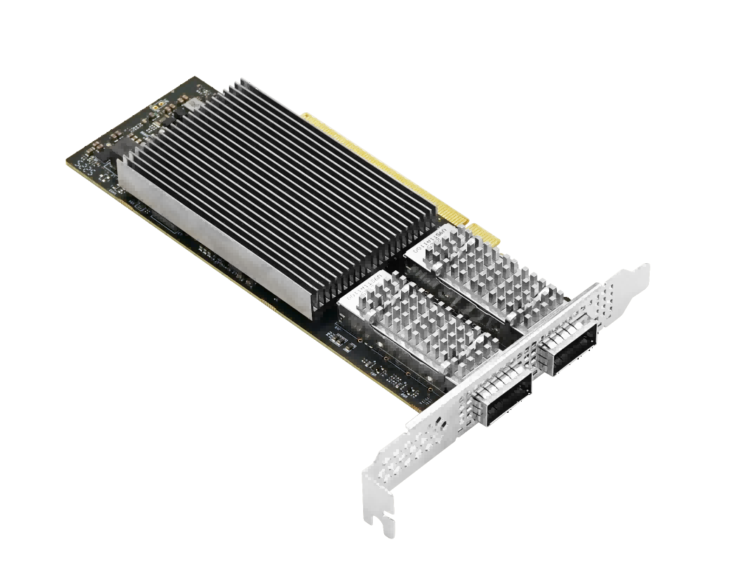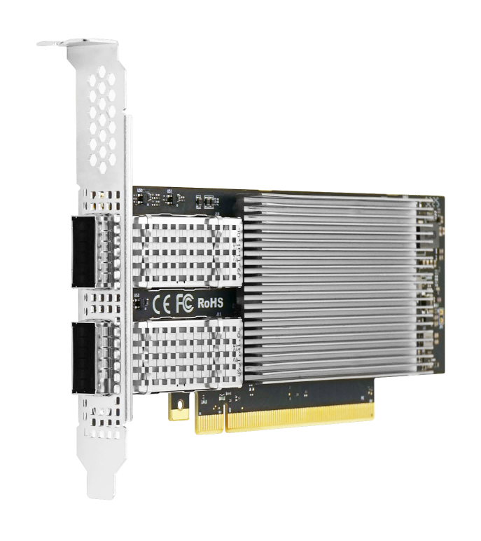 LRES1250PF-2QSFP56 is a PCIe x16 Dual-port100G Ethernet Network Adapter independently developed by Linkreal Co., Ltd. based on the Broadcom BCM57508 chip. It is equipped with two QSFP56 connectors, supports high-speed fiber transmission, and the physical board size follows the HHHL (Half-Height Half-Length) PCIe add-in card form factor.